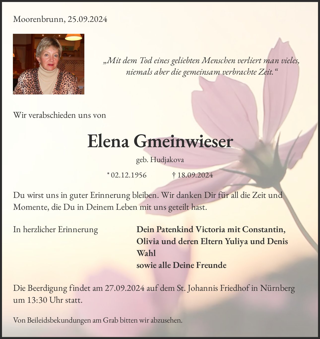 Die Beerdigung findet am 27.09.2024 auf dem St. Johannis Friedhof in Nürnberg um 13:30 Uhr statt.