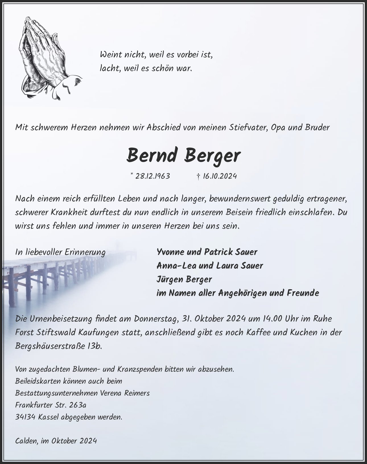 Von zugedachten Blumen- und Kranzspenden bitten wir abzusehen. Beileidskarten können auch beim Bestattungsunternehmen Verena Reimers Frankfurter Str. 263a 34134 Kassel abgegeben werden. Calden, im Oktober 2024
