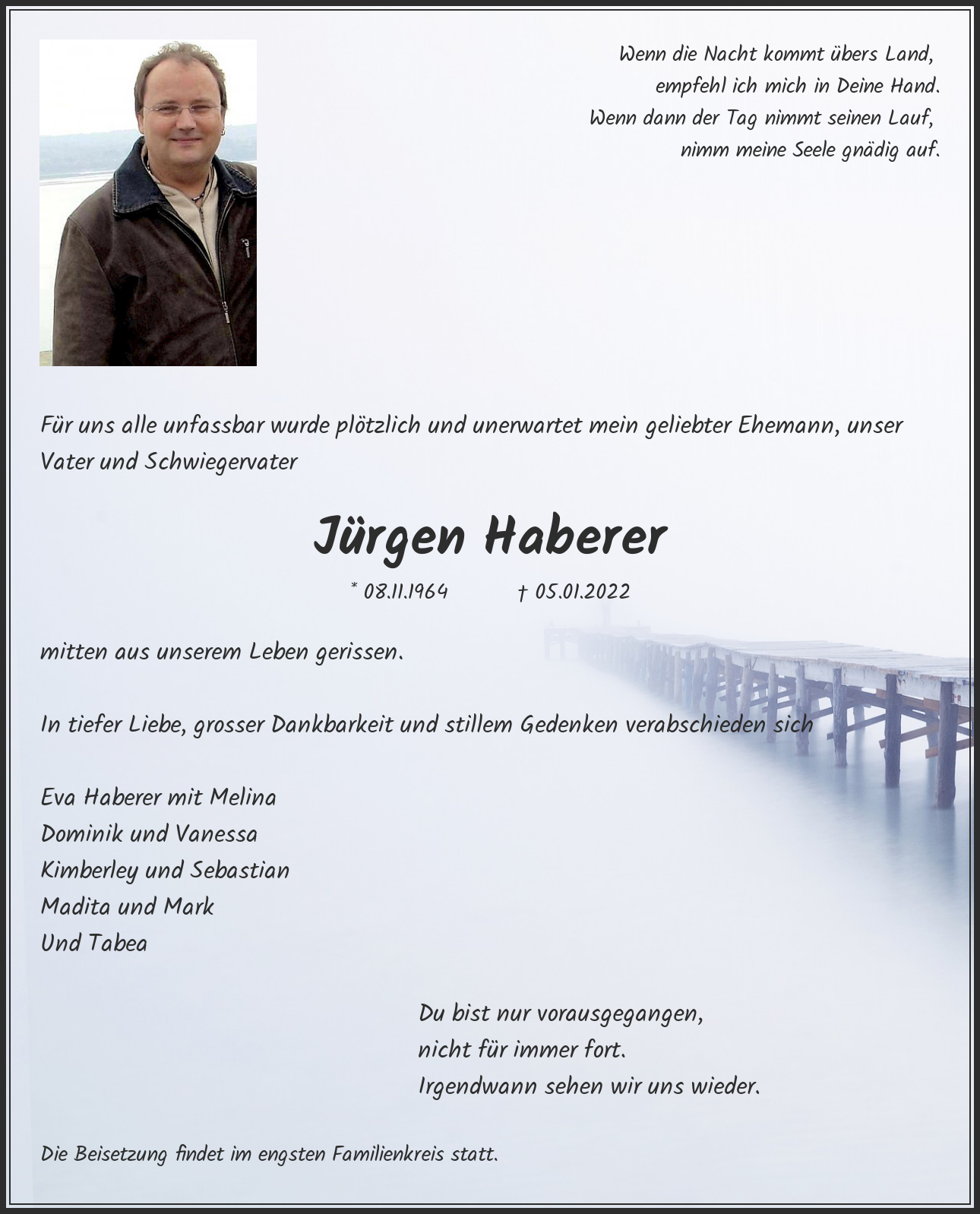 mitten aus unserem Leben gerissen. In tiefer Liebe, grosser Dankbarkeit und stillem Gedenken verabschieden sich Eva Haberer mit Melina Dominik und Vanessa Kimberley und Sebastian Madita und Mark Und Tabea