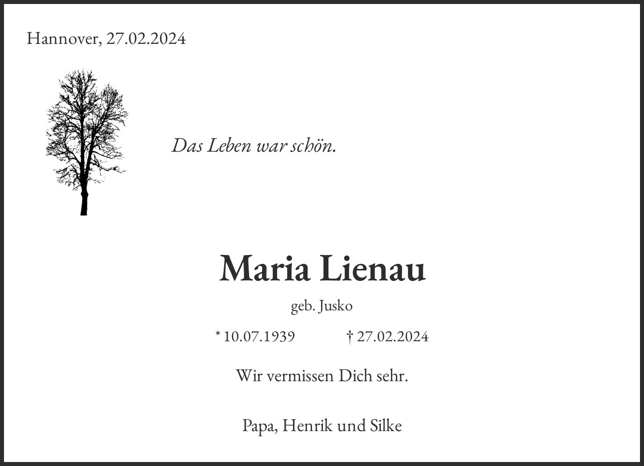 Maria Lienau geb. Jusko