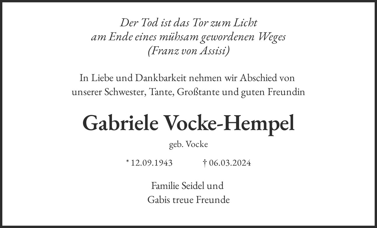 In Liebe und Dankbarkeit nehmen wir Abschied von unserer Schwester, Tante, Großtante und guten Freundin