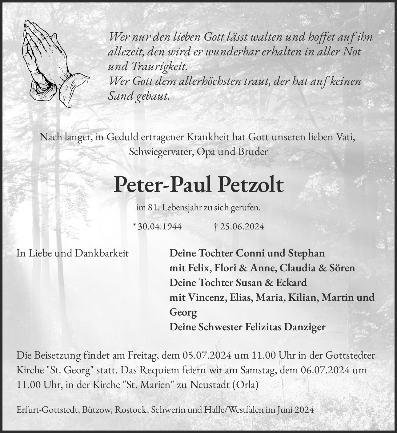 Peter-Paul Petzolt im 81. Lebensjahr zu sich gerufen.