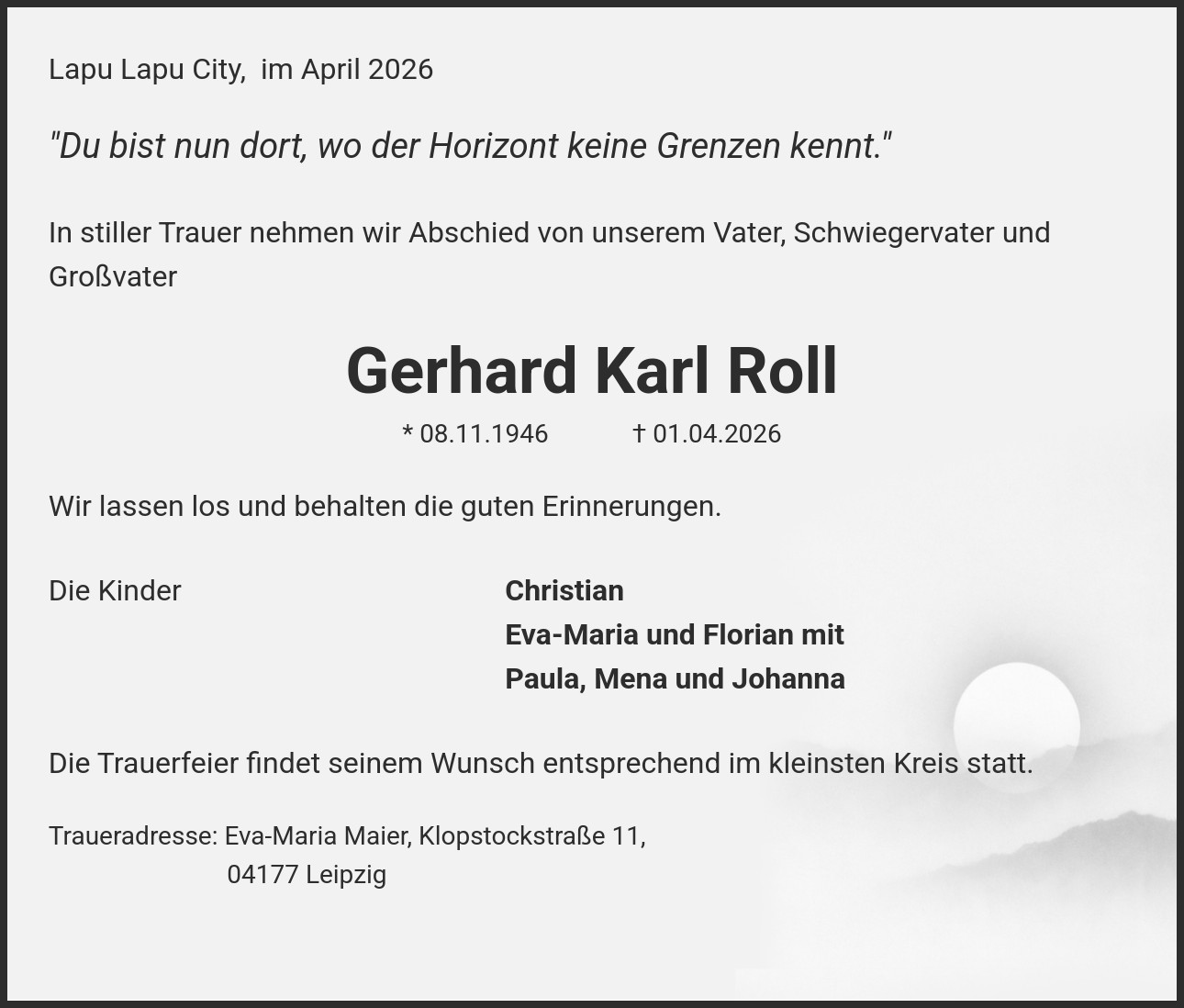 Traueradresse: Eva-Maria Maier, Klopstockstraße 11, 04177 Leipzig