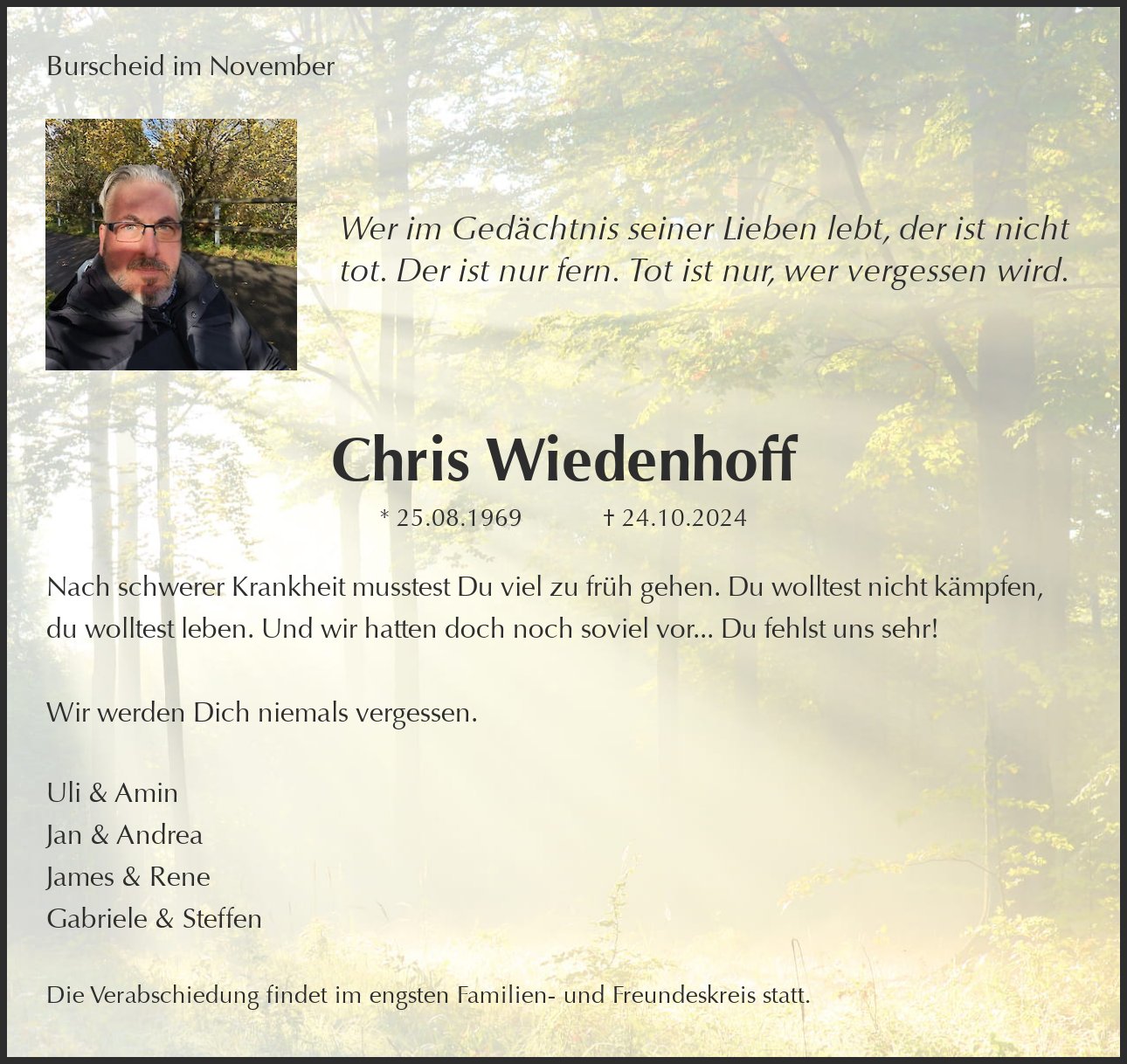 Die Verabschiedung findet im engsten Familien- und Freundeskreis statt.