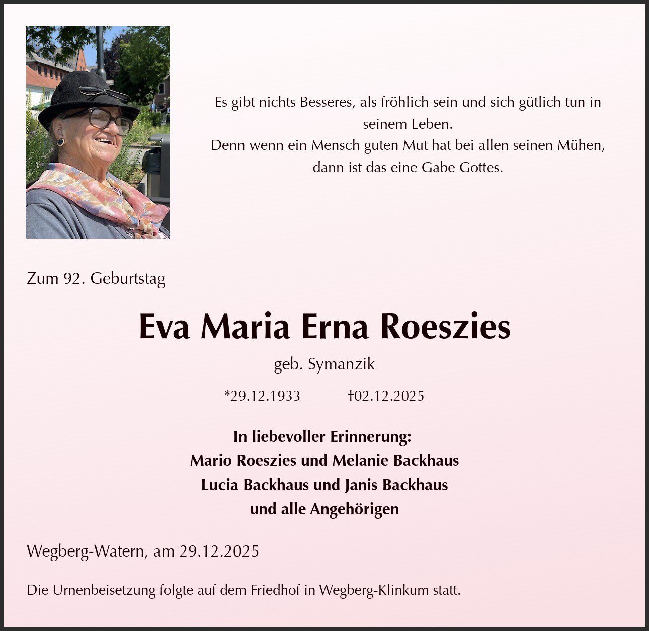 In liebevoller Erinnerung: Mario Roeszies und Melanie Backhaus Lucia Backhaus und Janis Backhaus und alle Angehörigen