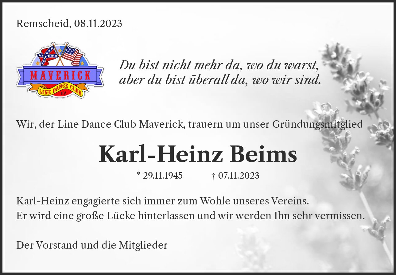 Wir, der Line Dance Club Maverick, trauern um unser Gründungsmitglied